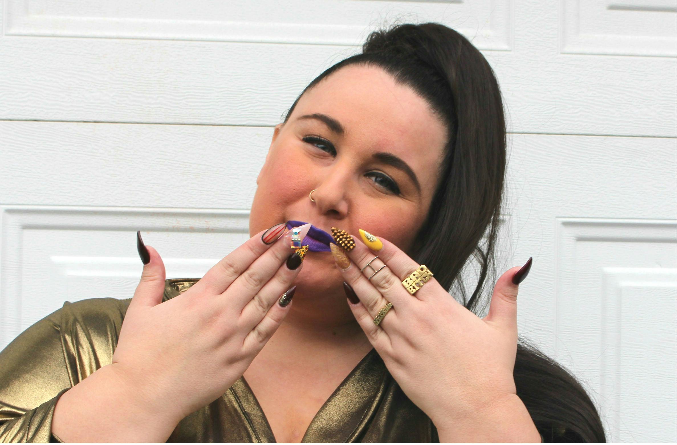 Nail art Lovers ~ One acrylic nail hack is to simply grow your real nails out long enough and hone in on your shaping skills, so your actual nails look fake. That's what Canadian blogger Ama Scriver has done ...